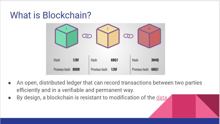 Blockchain's "Proof of Work" ensures that hacking of data inside the block is restricted by it's design.