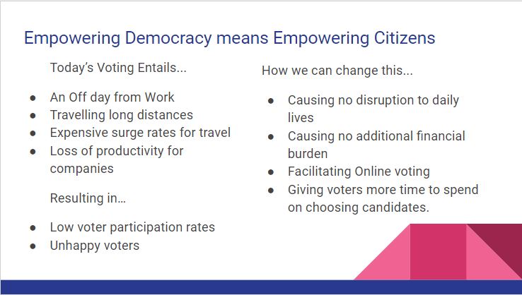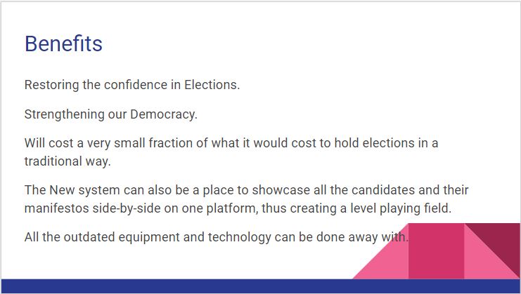 And for those voters who might not have the technical know-how or necessary devices to cast a vote from the comfort of their own privacy, the regular polling booths may still be kept operational. The only change here would be that the EVMs/VVPAT will be replaced with Blockchain member devices.